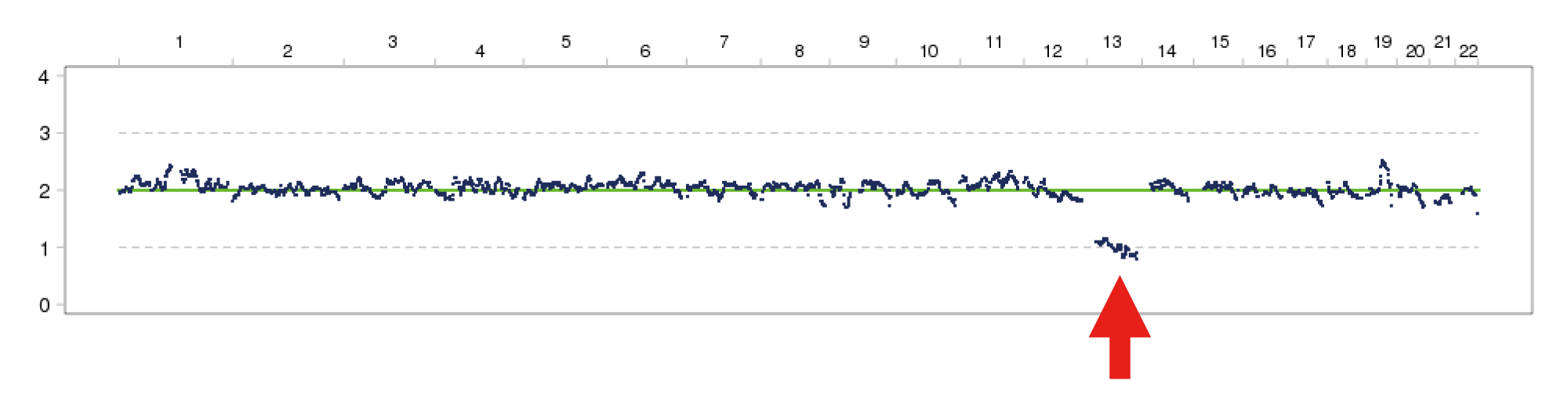 ▲ 因夫妻一方有羅氏轉位,故胚胎有很高的機率為不平衡轉位,此胚胎為第13號染色體單倍體
